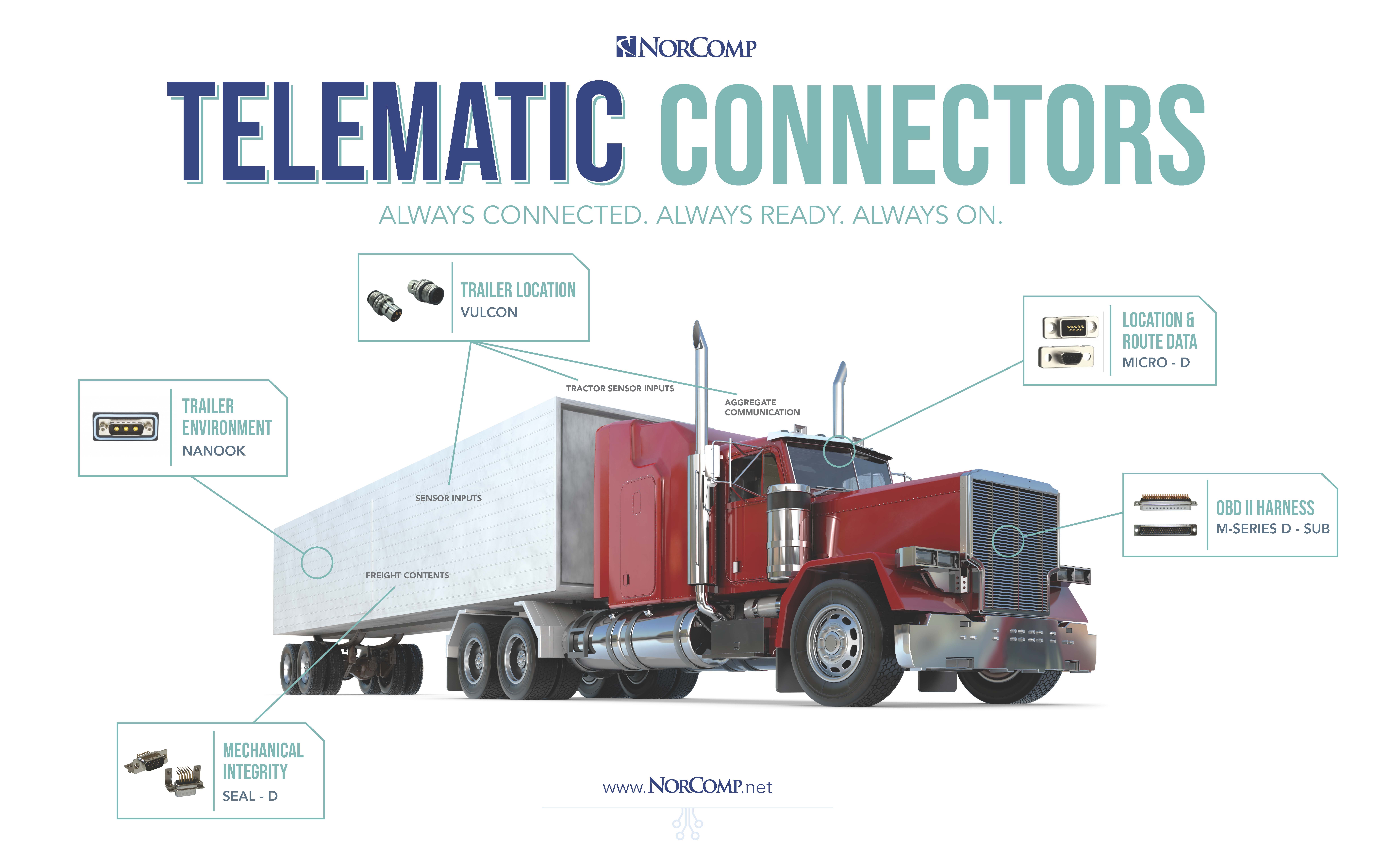 As always, NorComp can provide reliable ways to integrate sensors with onboard diagnostics, telematic communication, and other vehicle electronics. For more guidance on selecting parts for your project see our telematics brochure or contact one of our NorComp technical experts.